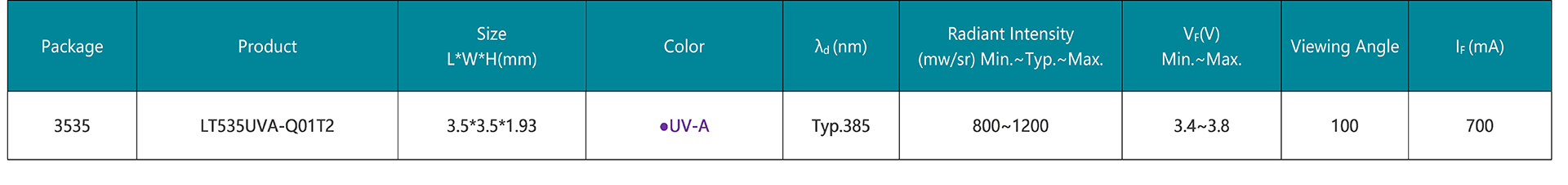 CHIP LED封裝的3535正貼UVA產(chǎn)品