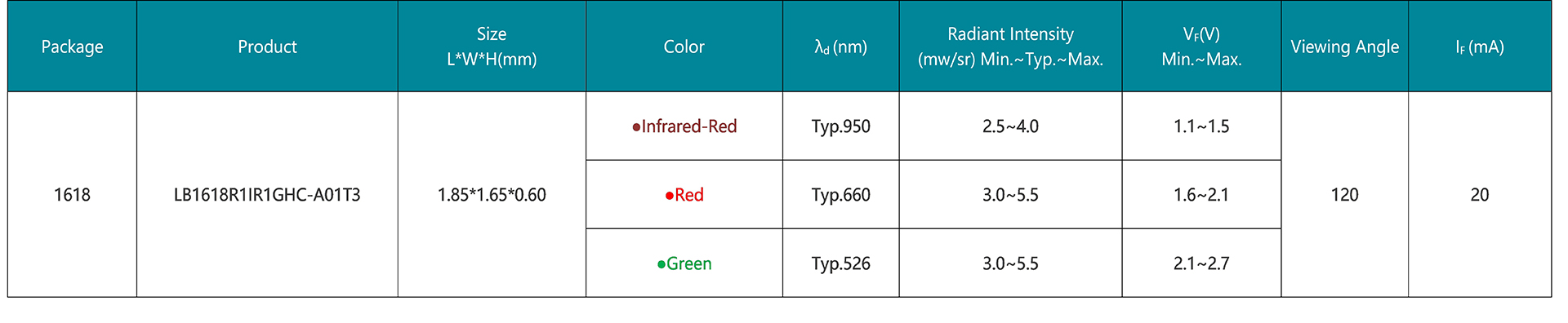 下一篇:SMD Type Top View 1618 Package